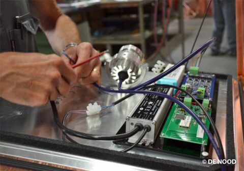 De ondernemers willen graag dat de straatverlichting bijdraagt aan de sfeer in het dorp. Ook daarmee hebben we rekening gehouden. De armaturen van het model Haagse Kap hebben een klassieke uitstraling, passend bij de monumentale bebouwing van Midsland. Bijzonder is dat de armaturen zijn voorzien van ingebouwde RGBW kleurenspots, die de bomen in de dorpskern in alle denkbare kleuren kunnen aanlichten. De spots zijn onafhankelijk aan de sturen en te programmeren. Wanneer ze branden, wordt de openbare straatverlichting automatisch gedempt.