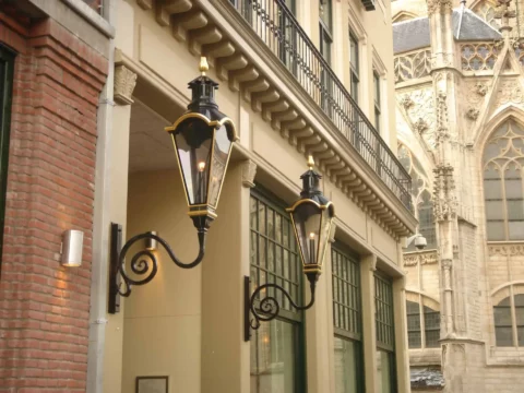 De Amsterdam Grand is een exacte replica van een achttiende-eeuwse olielantaarn met fronton randen. Dit armatuur is in onze collectie met recht een prachtexemplaar en wordt zelfs nog fraaier indien deze zwart wordt afgelakt en en voorzien van biezen van bladgoud. Met de zeer exclusieve en representatieve vormgeving is deze ranke verschijning terug te vinden aan monumentale gevels op authentiek handgesmede muurarmen.